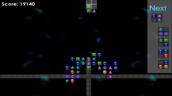 A tile-matching puzzle game with a twist! Centric puts a new spin on puzzle games by rotating the whole board, not the falling pieces! Match four or more pieces to clear them away and score points. Clear multiple pieces in a row to score even more! Round up clusters to chain together, but watch out: unsupported pieces wind up falling away! A fast, addictive game that’s sure to turn that frown upside down! Features two different skins, three music tracks, gamepad support, and a marketing blurb that revolves around bad puns!